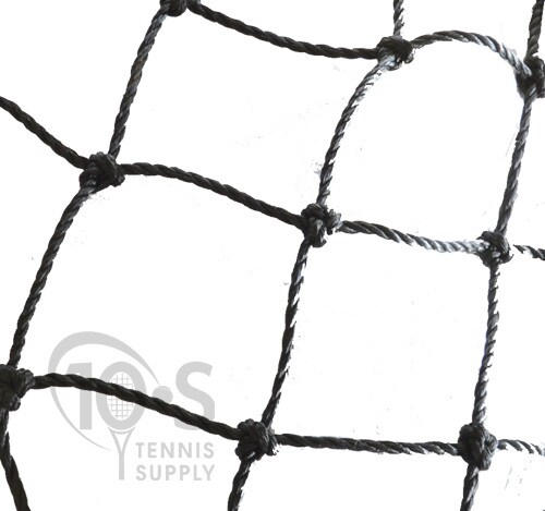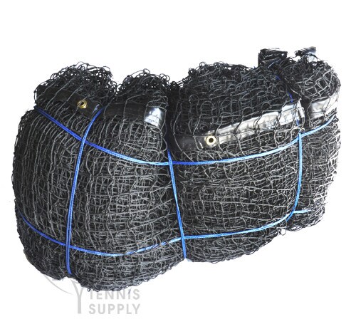 The 10' x 60' Knotted Divider Netting is designed to keep tennis balls contained within courts that lack side fencing. Our Knotted Divider Netting is made of 1-3/4" knotted polyethylene with 140 lb. breaking strength. The Knotted Divider Netting is bound on all four sides with heavy-duty vinyl-coated nylon. The vinyl border is double sewn to top and sides for extra durability. Grommets are included every 18" along the top and sides for easy installation. Top and sides feature a 1" vinyl skirt. Lead rope is sewn into the bottom vinyl band to prevent billowing in windy conditions. Standard size is 10' high x 60' long, so two pieces will be needed to block off a 120' long court. The 10' x 60' Knotted Divider Netting is available in Green or Black.