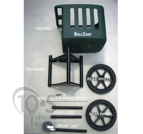The Tri-Wheel Ball Cart is one of the most maneuverable carts on the market. It features large rear legs and swivel front wheel so it can move over almost any terrain. The Tri-Wheel Ball Cart also features adjustable legs for keeping the balls at fingertip height for almost any teaching pro or player. The basket is a heavy-duty molded plastic and the frame is non rusting aluminum. 250 ball capacity.